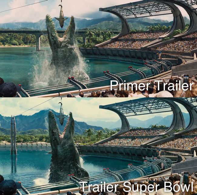En estos fotogramas podemos comprobar cómo han mejorado algunas de las escenas que coinciden en ambos tráilers, como es el caso del dinosaurio acuático que se alimenta de un tiburón, o la estampida de los visitantes del parque, que ahora cuenta con reptiles voladores. Ya lo explicó en su día Colin Trevorrow, todavía queda mucho trabajo por hacer, y calma a los fans, con aclaraciones como que la puerta de Isla Nublar será real, en el tráiler estaba en CGI porque la verdadera no estaba lista para ser mostrada todavía.