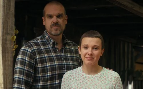 Millie Bobby Brown, que interpreta a Eleven en el universo Hawkins, sí habló de su vínculo con Harbour, el sheriff Jim Hopper en la serie de los Duffer. "Obviamente tengo un lazo muy único con David por nuestra relación padre-hija, hacemos todas las escenas juntos. Ha sido muy especial tenerlo conmigo durante todo el proceso", comentó la actriz británica.