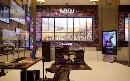 Con motivo del estreno del spin-off, SkyShowtime ha transformado el Espacio Movistar de Gran Vía en una academia de agentes federales para que sepamos lo que siente como marshals. Nada más entrar Madrid se convierte en Montana, con una barra de bar típica de la zona donde poder coger energía para lo que se viene.