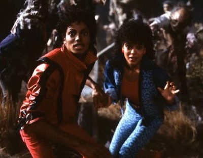 El rey del pop y Ola Ray rodeados de zombies