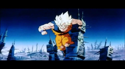 Escena del Super Saiyan Legendario mostrando su poder.